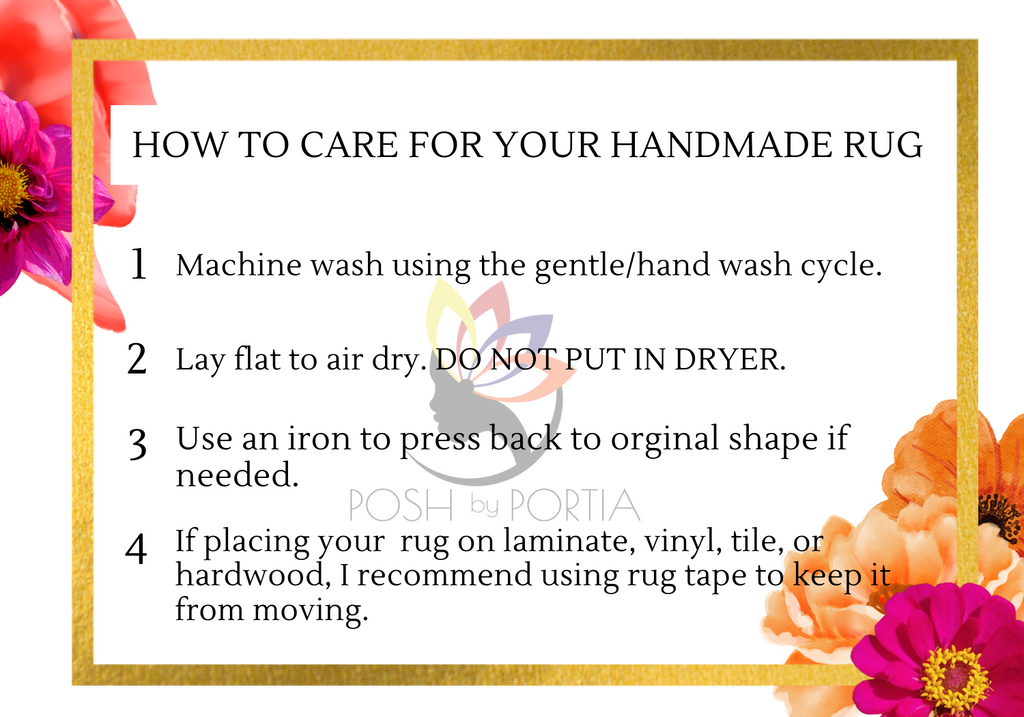 If placing your rug on vinyl, tile, hardwood or any smooth surface, I highly recommend using rug tape to prevent it from moving when stepped on.
