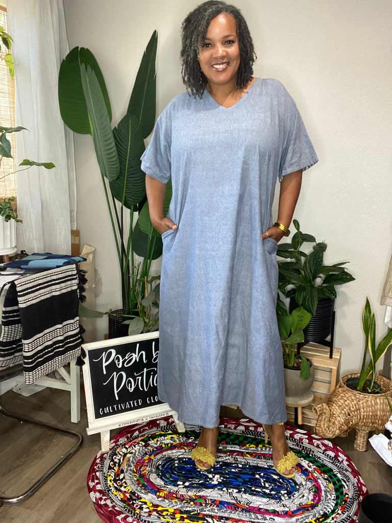 Discover the perfect combination of style and ease with our lightweight Denim Maxi Dress. Designed with comfort in mind, it's perfect for all your casual wardrobe needs. You can also dress it up with a cute pair of heels. What will you wear it with?