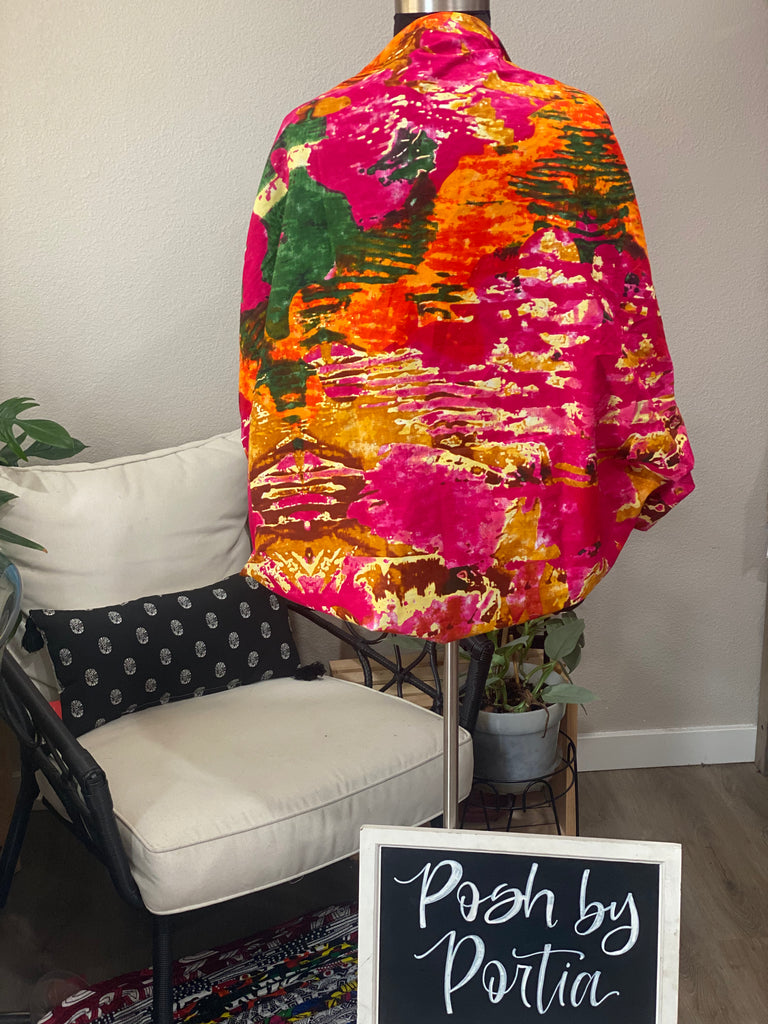 You’re going to love wearing this colorful cotton strug. Elastic cuffs can be pushed up for an elevated look or to show off your accessories. Keep it casual with jeans and a tank/tee or pair it with a knit dress; either way all eyes will be on YOU!